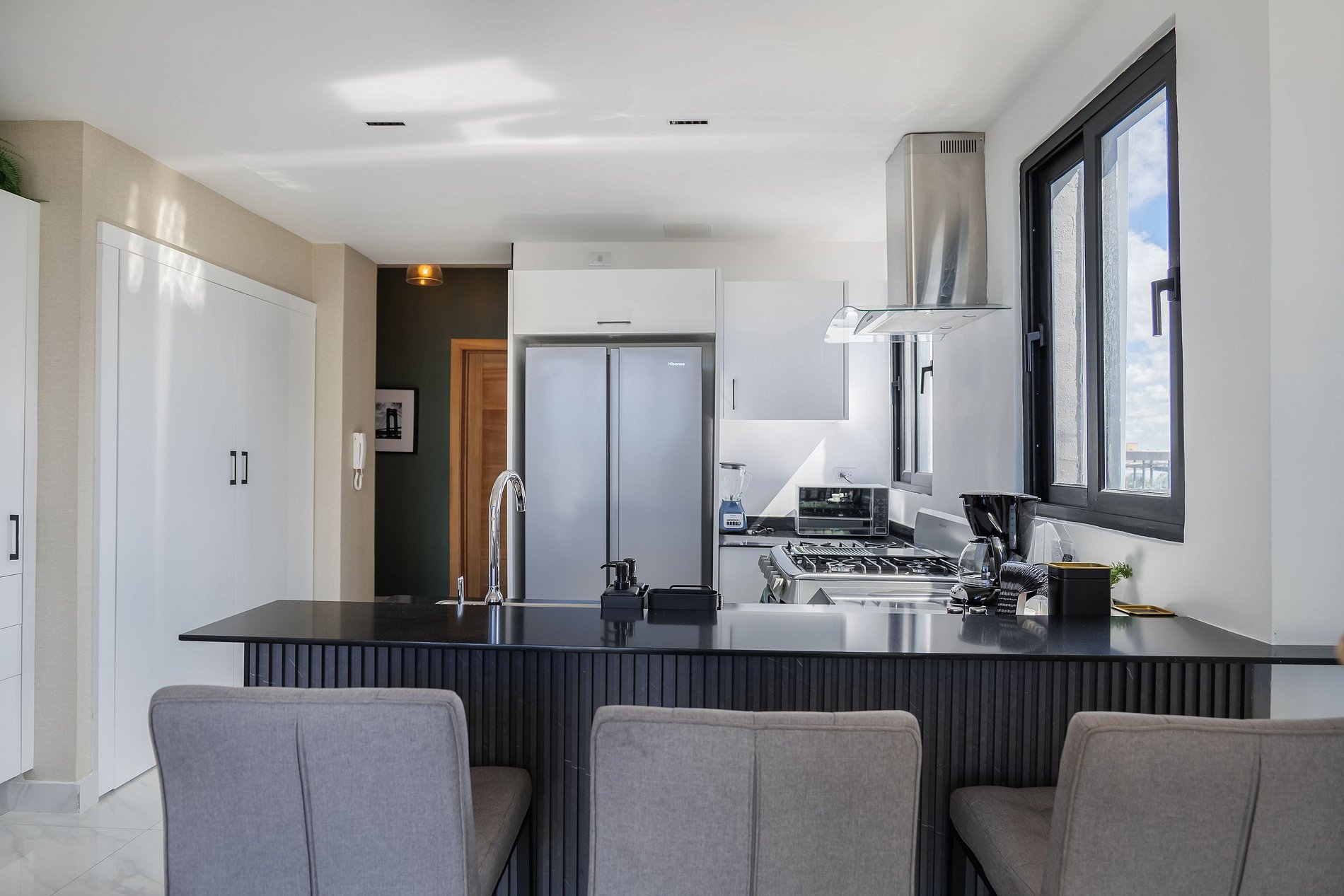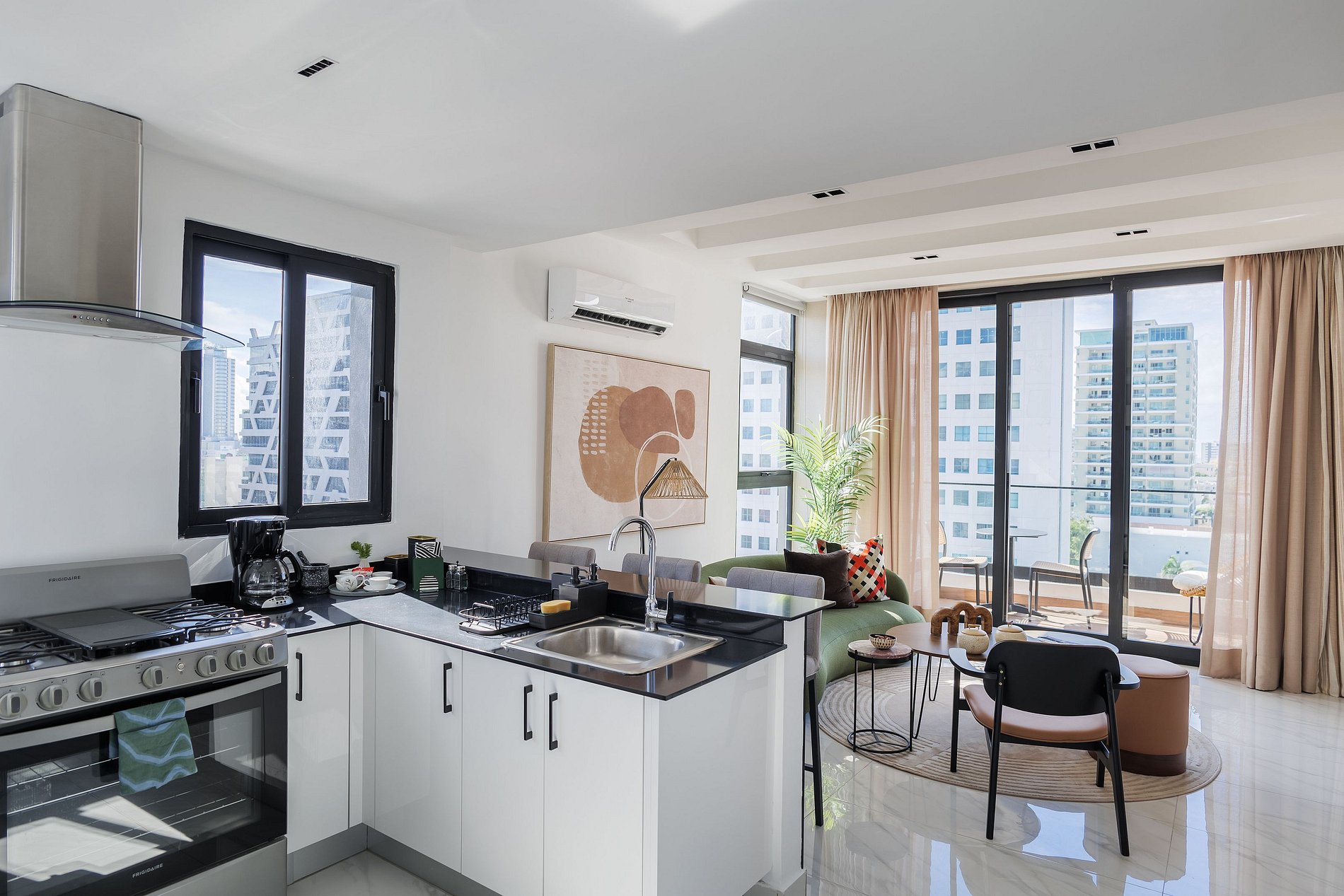 Enjoy a stylish experience at this centrally-located place in the heart of the city. This upscale one bedroom features an inviting and stylish interior with custom furniture, kitchen, and a private balcony with wonderful views. If the city is what you seek, here you have it! With this incredible location, savvy travelers will love the value of this stylish one bedroom apartment. Thoughtfully designed with bespoke finishes, modern furnishings, and kitchen, where you’ll get that “I’m home” feeling. The private balcony with all the comforts to enjoy the wonderful view from this 9th level apartment. Living room and bedroom feature a Smart TV to appreciate a movie or your preferred series. Whatever you have planned for your next adventure in the city, you will enjoy it! Amenities include: - Apartment is entirely yours. - 1 Parking spot is available. - One Master Bedroom with a Queen-size bed, mattress, sheets, duvet, and pillows. *Extra for longer stays only. - Smart TV in Master Bedroom and Living Room - Bedroom with its own private bathroom. - Air conditioning in bedroom and living room. - Kitchen with refrigerator, stove, oven, toaster, mugs, glasses, bowls, plates, utensils. *No salt, pepper, oil or condiments are provided. - Laundry area with washer and dryer (2 in one) - Hot water and electricity. ------------------------------------------------------------------ Staff is available from 8 am to 6 pm. Please read carefully the listing description, house rules, and check-in instructions, any questions please don’t hesitate to ask. Situations that may arise due to usage, will be scheduled to be solved as soon as possible. Emergencies that can wait for the next day, will be scheduled to be solved the next day. Please remember that this is an Airbnb and not a hotel, technicians and staff must be scheduled with anticipation and when available will solve any situation. As well, we do not offer Hotel types of services. Response time during Holidays/Weekends and after certain hours can be limited, as well as the availability of staff and technicians. ------------------------------------------------------------------- * No loud music after 10 pm. *Essentials provided for arrival: toilet paper, hand soap, dish soap, water, and coffee. * We do not provide bath soap, shampoo, conditioner, extra trash bags, or cleaning products. * It only accommodates (2) people, if more than 2 stay overnight we will charge $100 per extra person per night. * This home is in a residential building, please respect the rules established by it. *Early Check-Ins and Late Check-Outs are difficult to accommodate. If you need additional time, please consider booking an extra day. *Any guest booking this property must be staying at the property for the full duration of the reservation and is responsible for the actions of all people in the group. Bookings made on behalf of others are allowed for some unique circumstances so please inquire if you are planning to book for someone else but do not intend to stay yourself. * Alteration requests 7 days or less prior to check-in, will not be accepted. *If for any emergency, personal reason or situation out of our responsibility you need to checkout earlier than expected, cancel or change dates last minute, we will not refund under any circumstances the remaining days. You'll have access to: - Pool Area - Gym - Terrace *Only registered guests can make use of the building’s premises: terrace, pool, gym. Visitors are not allowed to use these areas under any circumstances. We are mostly available through Airbnb messaging, response in a matter of minutes. Rather than phone calls or other messaging apps. Staff is available from 8 am to 6 pm. Please read carefully the listing description, house rules, and check-in instructions, any questions please don’t hesitate to ask. Situations that may arise due to usage, will be scheduled to be solved as soon as possible. Emergencies that can wait for the next day, will be scheduled to be solved the next day. Please remember that this is an Airbnb and not a hotel, technicians and staff must be scheduled with anticipation and when available will solve any situation. As well, we do not offer Hotel types of services. Response time during Holidays/Weekends and after certain hours can be limited, as well as the availability of staff and technicians.