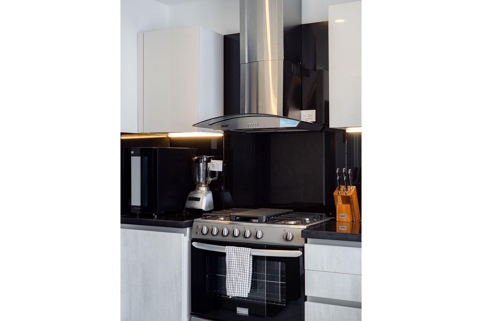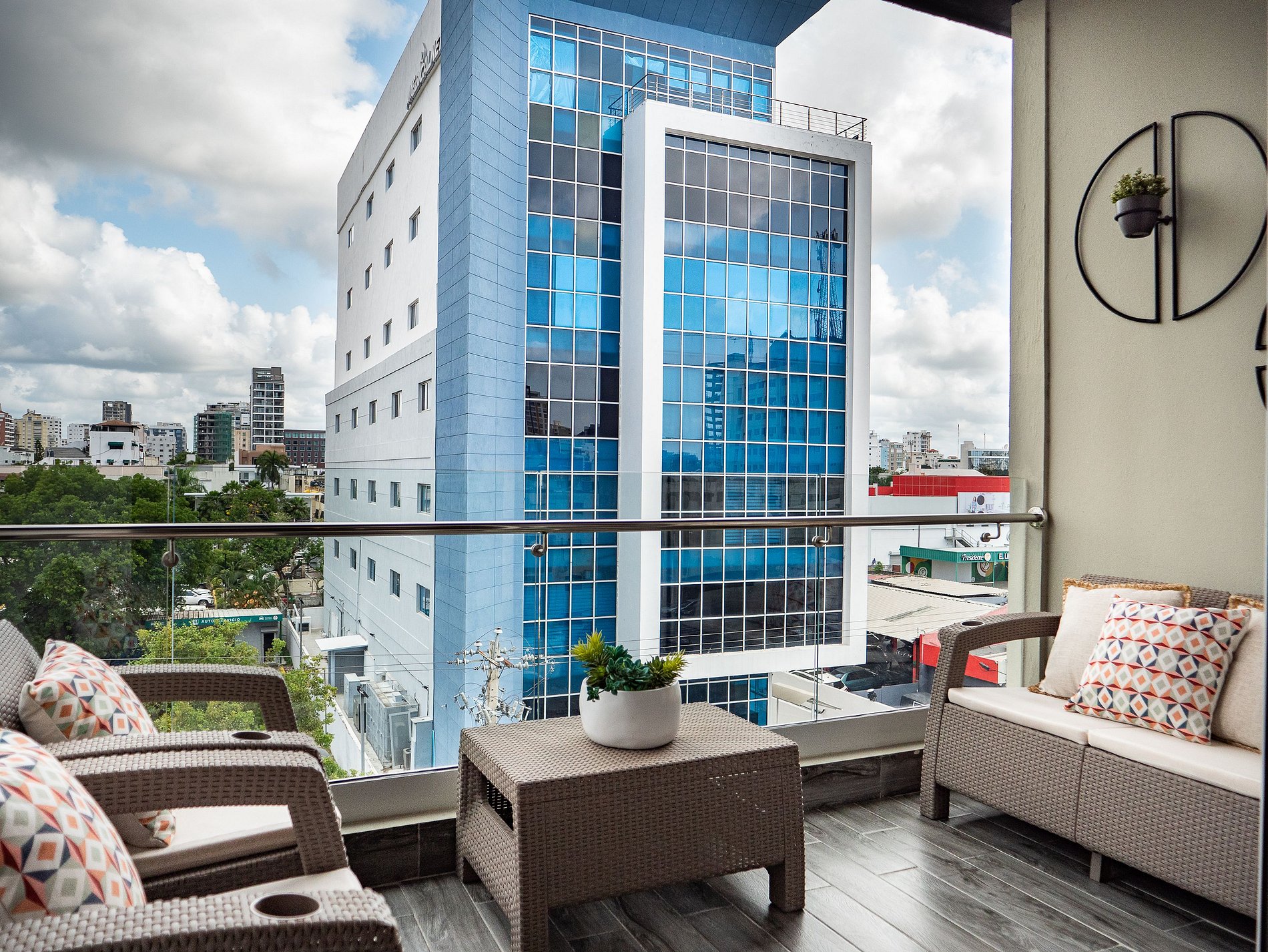 This spectacular two bedroom apartment, is located in the heart of the city, Piantini. Brand new and spacious, uniquely decorated to welcome you to your getaway. The apartment counts with integrated living room and dining area to enjoy great moments. When you are ready to unwind and relax, the living room will be waiting for you with a Smart TV to watch your favorite shows or series. A fully equipped kitchen with the amenities you may need during your stay to prepare your favorite meals. The master bedroom features a King-sized bed, private full bathroom, walk-in closet, Smart TV and a workspace. Second bedroom features a Queen-sized bed, private full bathroom, and plenty of closet space.