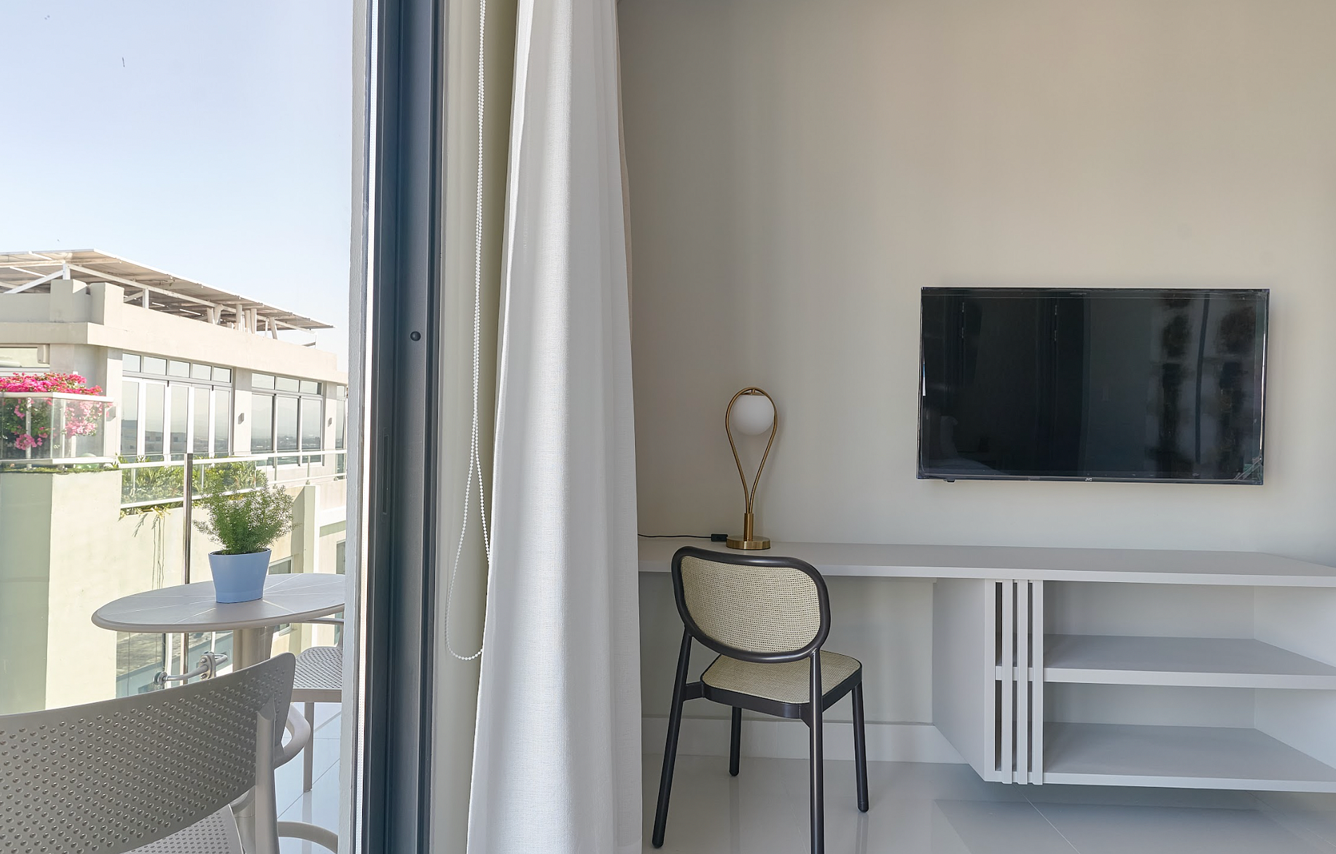 The experience of staying in this exceptional home begins as you enter. Thoughtfully designed with bespoke finishes, modern furnishings, and a fully-equipped kitchen, where you’ll get that “I’m home” feeling with this elegant apartment. Featuring an open concept living room and kitchen, from where you will enjoy a high-rise view of the city. The comfortable studio, with a Smart TV to appreciate a movie or your preferred show. The spacious bedroom has a King-size bed, a full bathroom, plenty of closet space, and a private balcony to have your cup of tea or coffee. The dining table and a kitchen area are equipped with modern appliances. It’s just wonderful for coming back and relaxing after a busy day in the city!