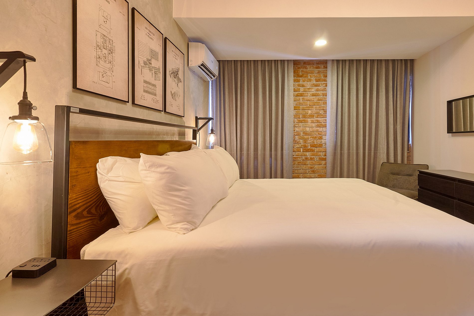 Welcome to the city! When the fuss and bustle of life becomes a bit too much, there’s no better place to recharge than amongst this this industrial style one bedroom apartment, that offers you a one-of-a-kind feel. The master bedroom features a custom made King-sized bed, extensive exposed brick walls, private full bathroom and a walk-in closet. Must say, the bathroom is uniquely designed too.